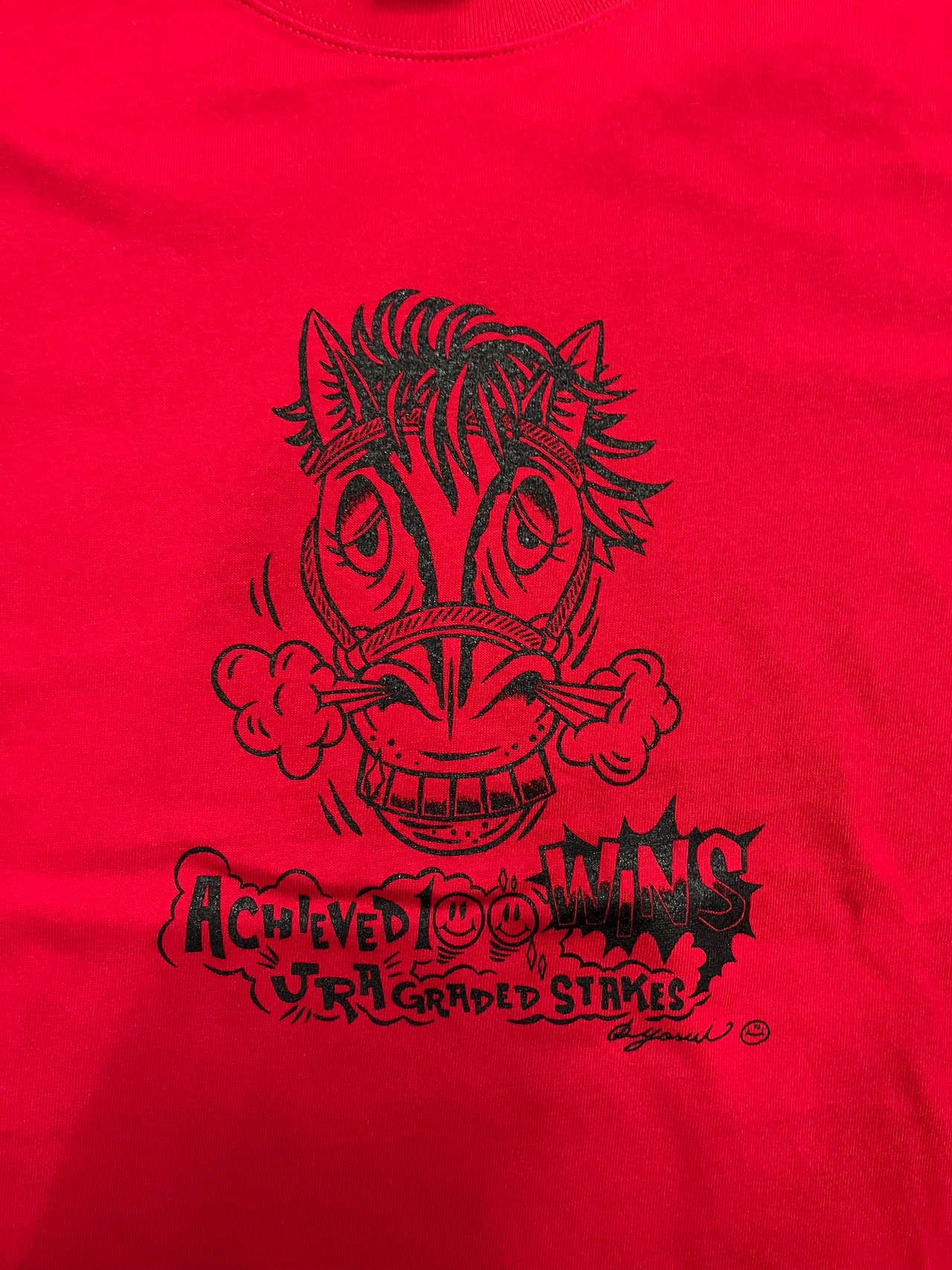 長年親交のある池添騎手より重賞100勝達成記念のTシャツをオーダーいただきました。