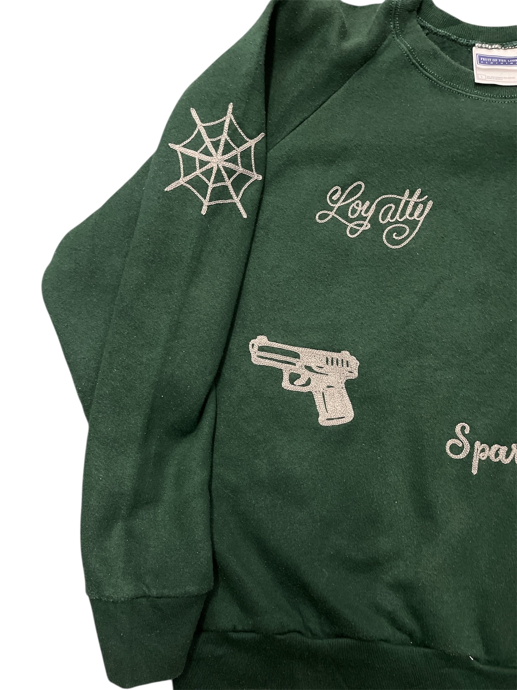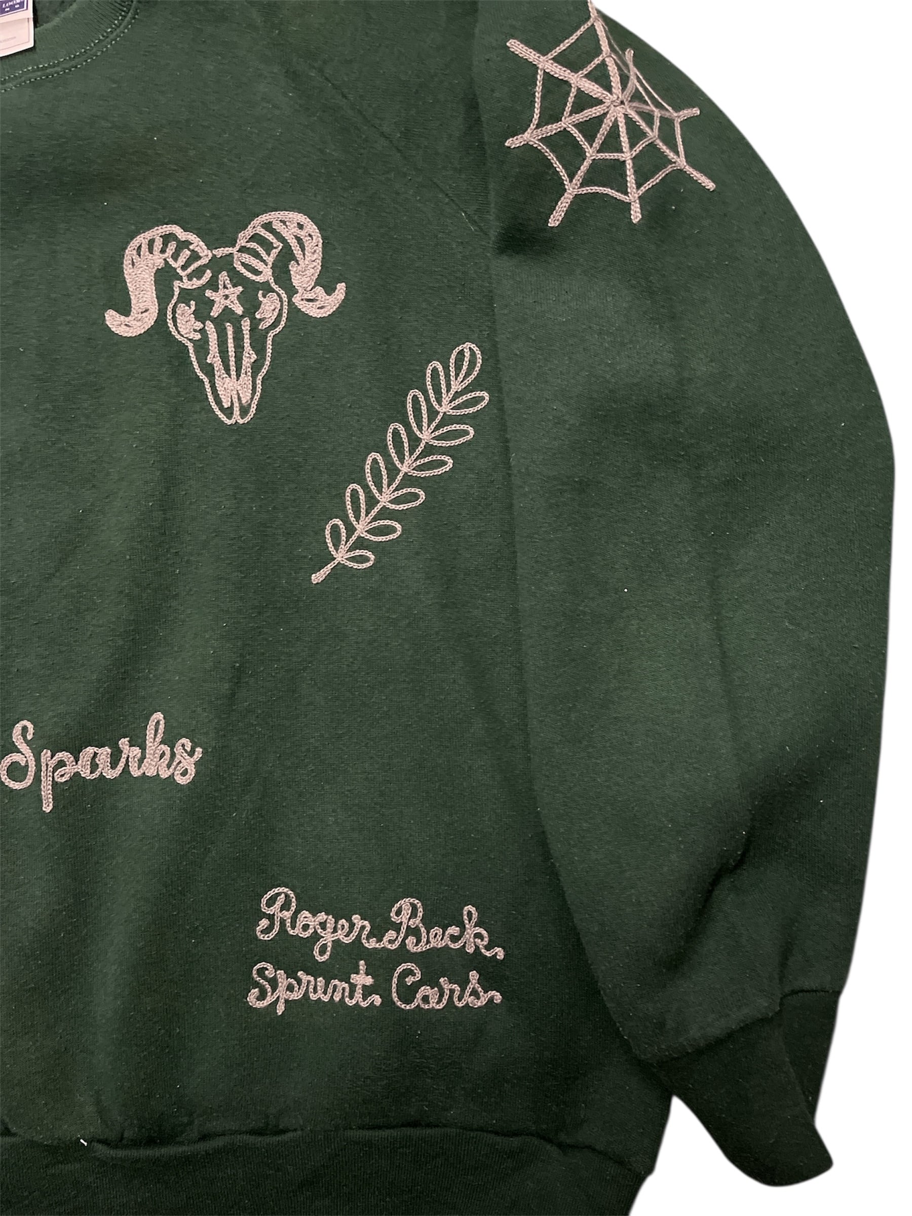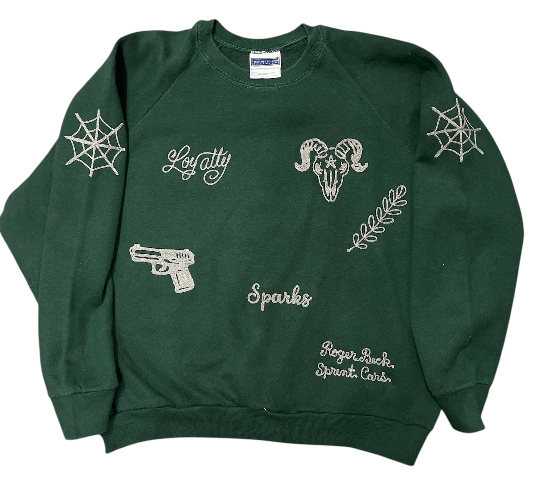 古着のボディーを使ってチェーンステッチ 刺繍を入れたリメイクSWEAT。