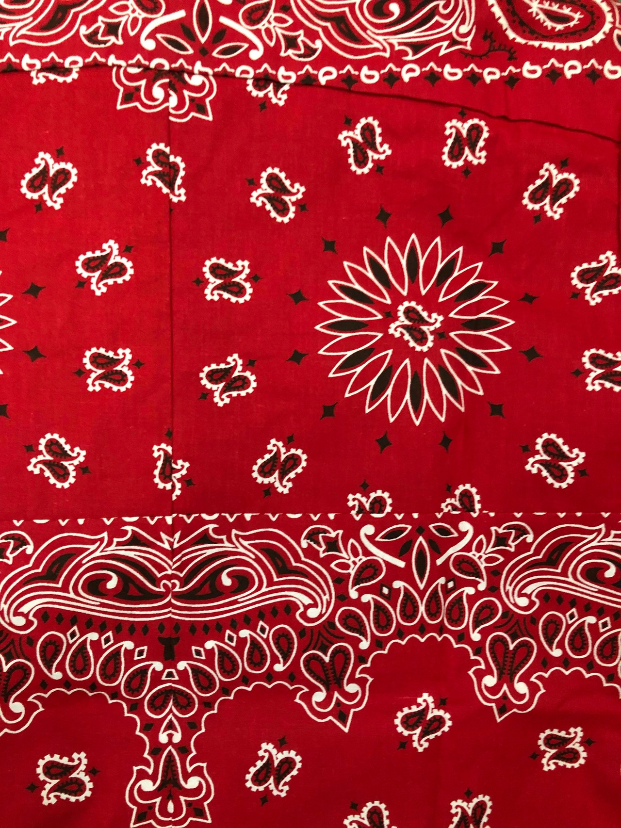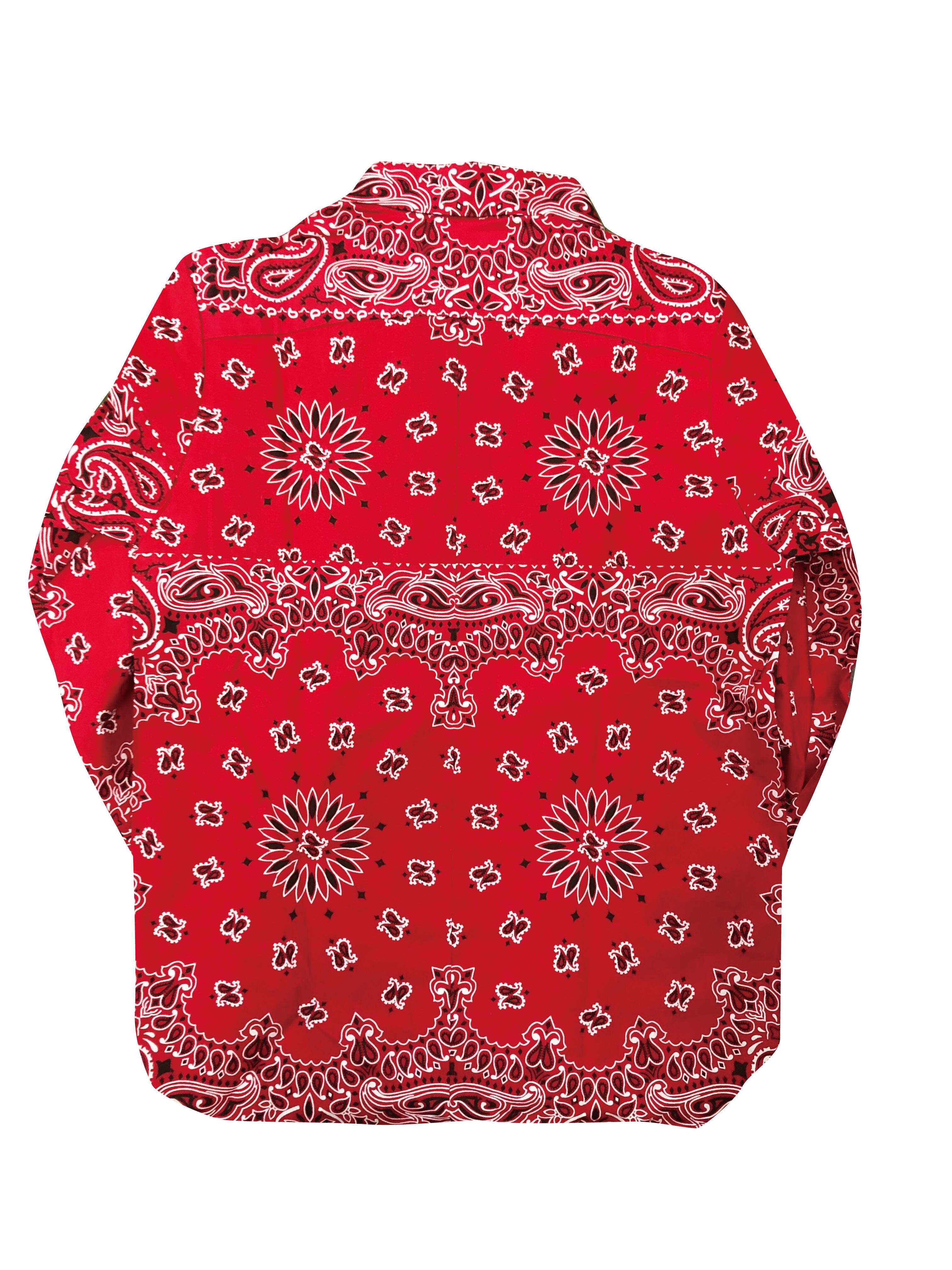 MADE IN USA制のバンダンを生地としてカスタムしたオリジナルのロングスリーブシャツになります。
