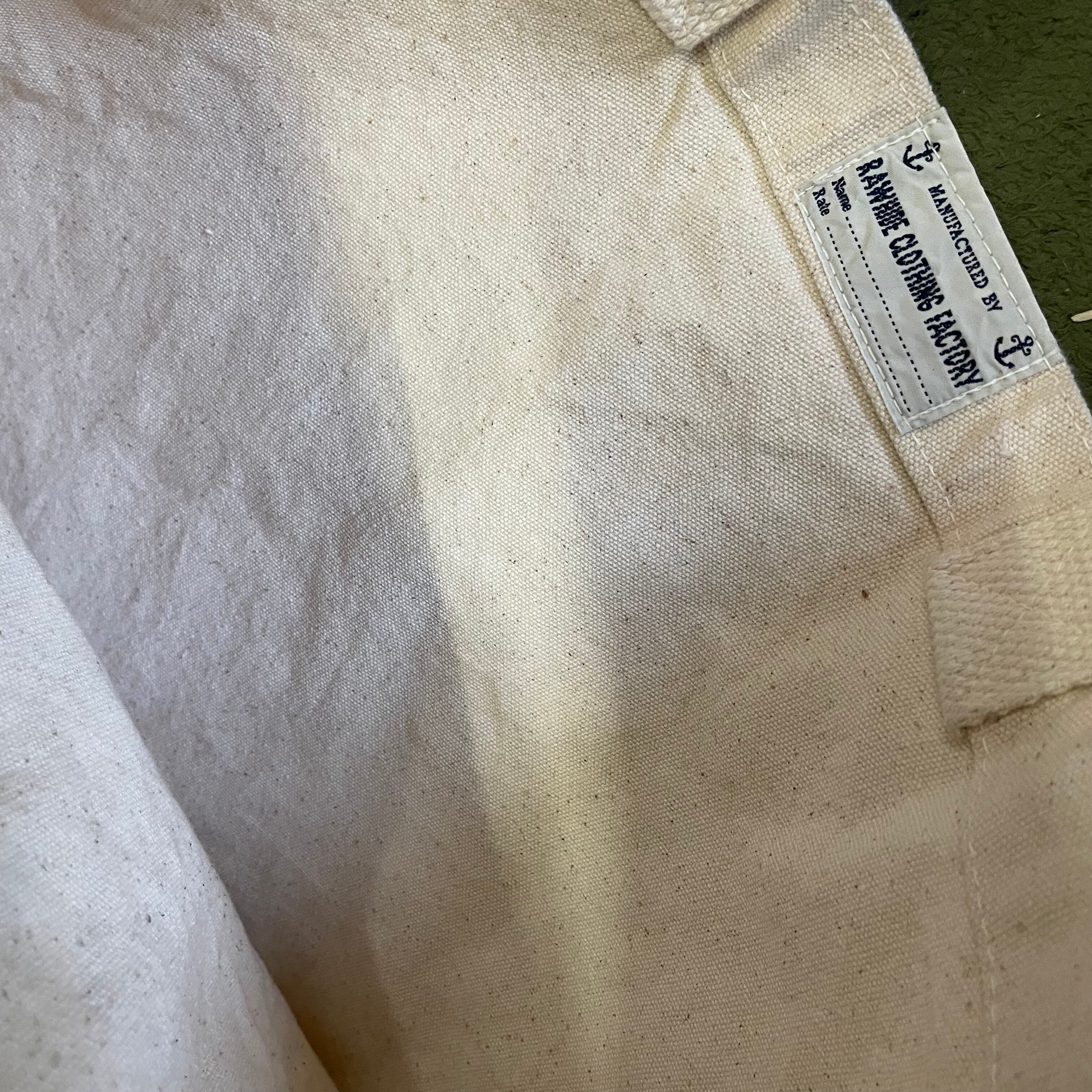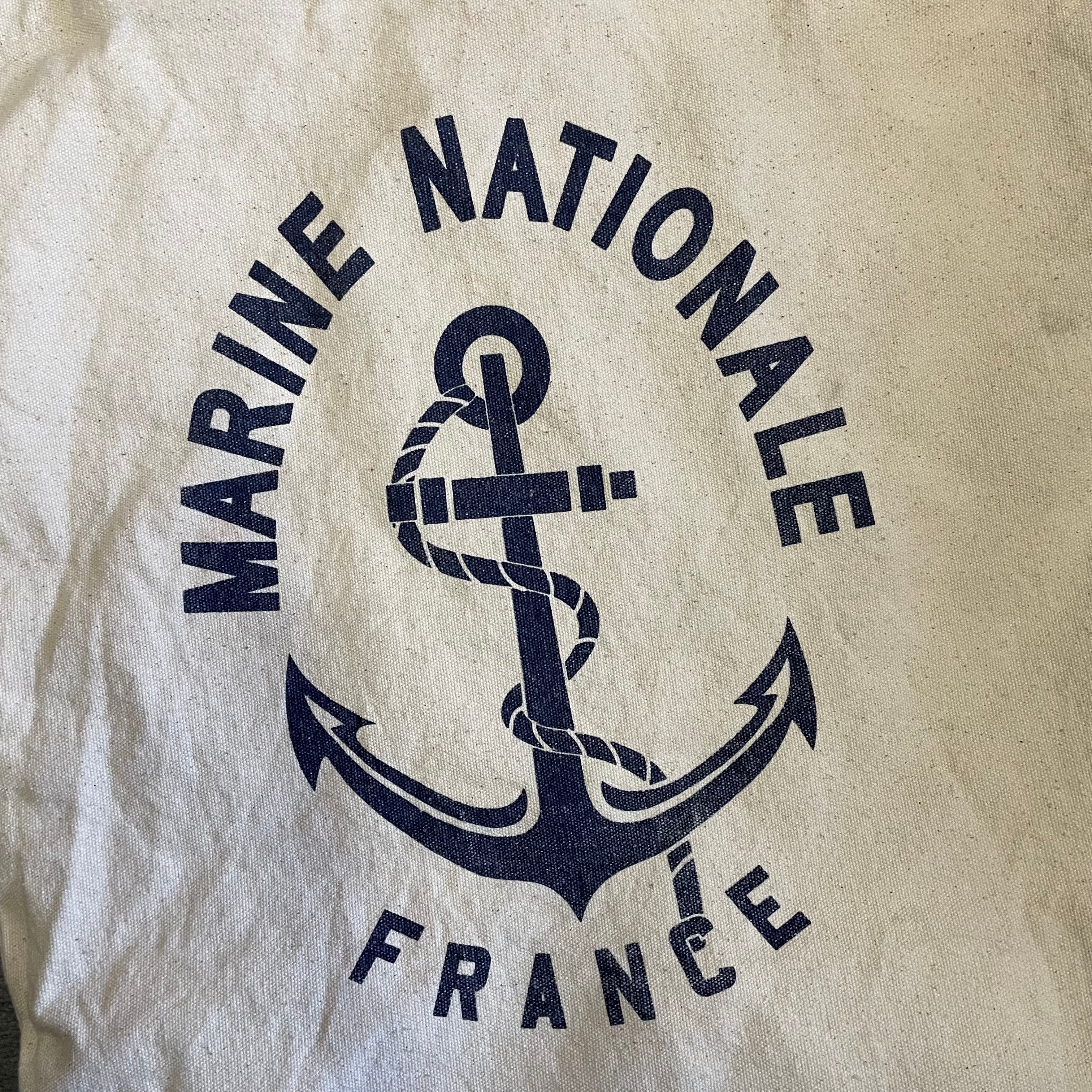 しっかりしたキャンバス生地にネイビーの染み込みプリントが入っているトートバックです。